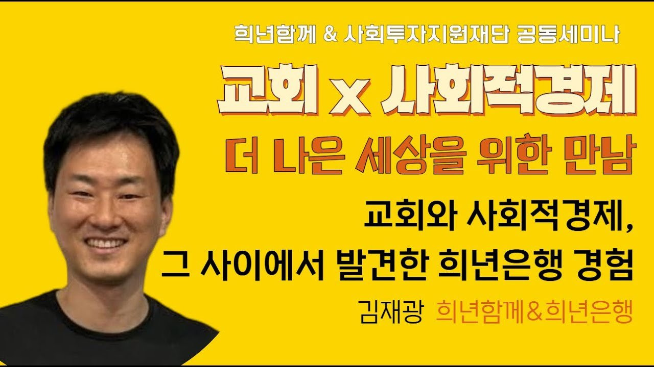 4월 "교회X사회적경제 세미나" 발제영상 공개조합원 함께 공간/상담·대출·사역 and 오늘 2025. 8. 26. 13:51사전학습 자료입니다~ 9월 4일(목)에 열리는 "교회와 사회적경제 포럼"은 지난 4월에 개최한 "교회X사회적경제 세미나"의 이어달리기인 셈인데, 그때 발제한 내용을 영상에 담아 공유드립니다. 포럼 앞두고 한번씩 살펴보고 오시면 포럼의 맥락도 짚고 이해도 더 심화되실 거라 생각합니다~○ 강도현 "새로운 시대의 영성, 교회와 사회적경제의 동행"발제2 : bit.ly/더나은사회를위한만남2○ 김재광 "교회와 사회적경제, 그 사이에서 발견한 희년은행 경험"발제3 : bit.ly/더나은사회를위한만남3