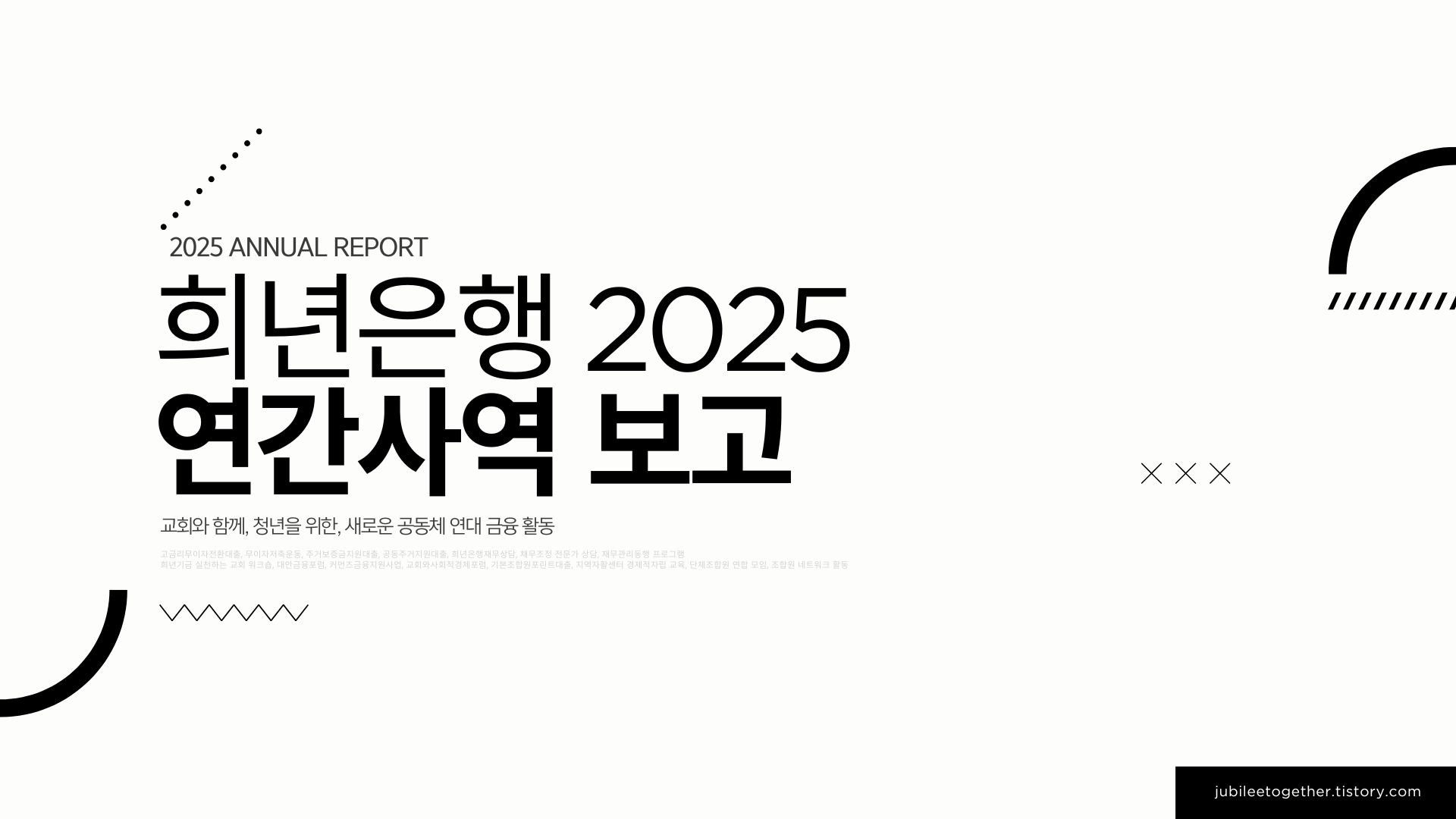 2025년 희년은행 연간 사역 보고 자료를 공유해 드립니다.